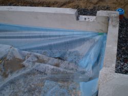 Ovan marknivå ska det vara en luftspalt som i bilden ovan för att inte fukt ska vandra kapillärt mellan ångspärr och mur upp i syll. Denna luftspalt möjliggör uttorkning av den delen av muren som är ovan mark.