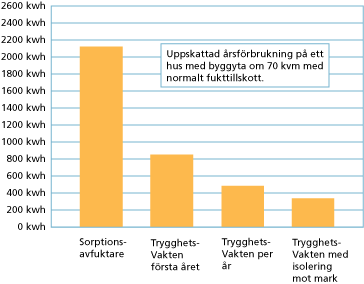 -Sorptionsavfuktare DH4 / DH6 16-30 kWh/ per kvm och år. DH6 ligger normalt ca 20% lägre än DH4.