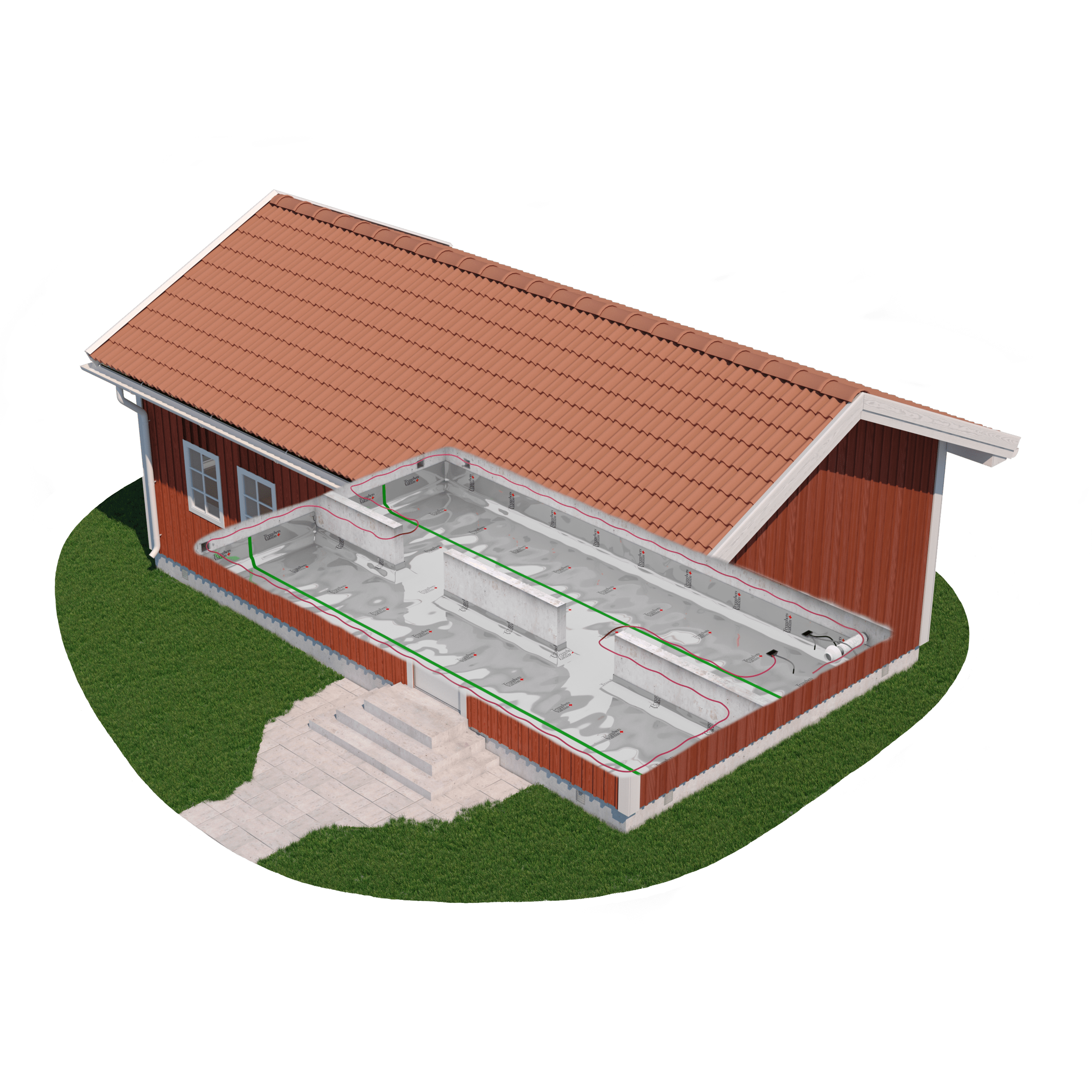 Materialforbruk: 1 plugg per 60 cm grunnmur.